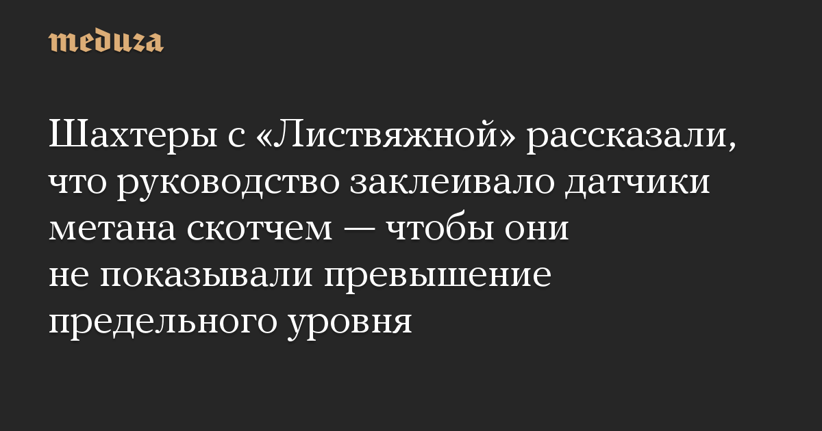 Шахтеры с «Листвяжной» рассказали, что руководство заклеивало датчики метана скотчем — чтобы они не показывали превышение предельного уровня