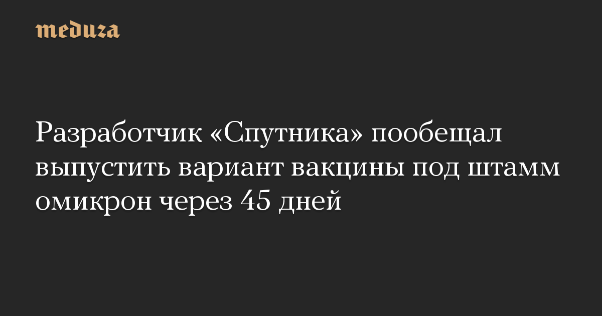 Разработчик «Спутника» пообещал выпустить вариант вакцины под штамм омикрон через 45 дней