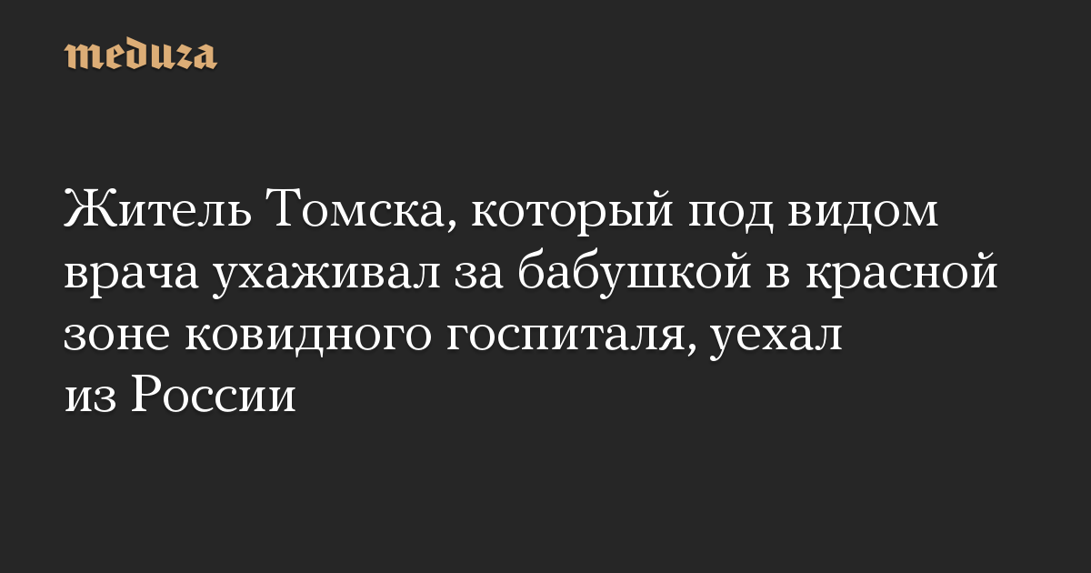 Житель Томска, который под видом врача ухаживал за бабушкой в красной зоне ковидного госпиталя, уехал из России