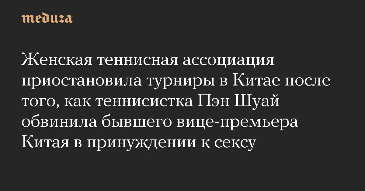 Женская теннисная ассоциация приостановила турниры в Китае после того, как теннисистка Пэн Шуай обвинила бывшего вице-премьера Китая в принуждении к сексу