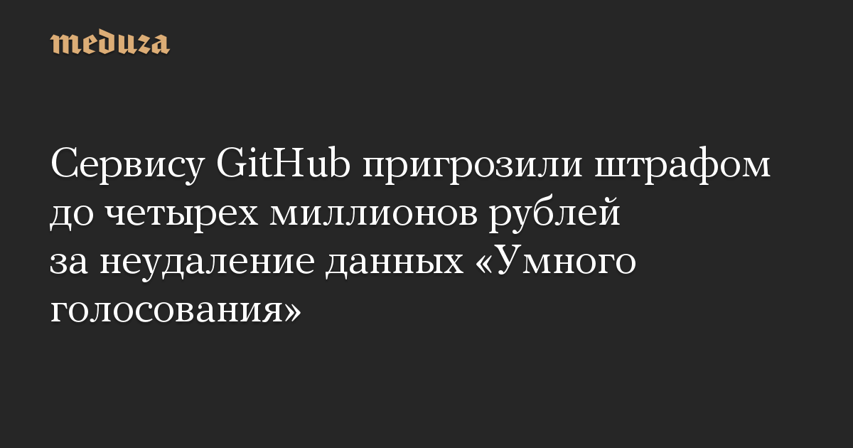 Сервису GitHub пригрозили штрафом до четырех миллионов рублей за неудаление данных «Умного голосования»