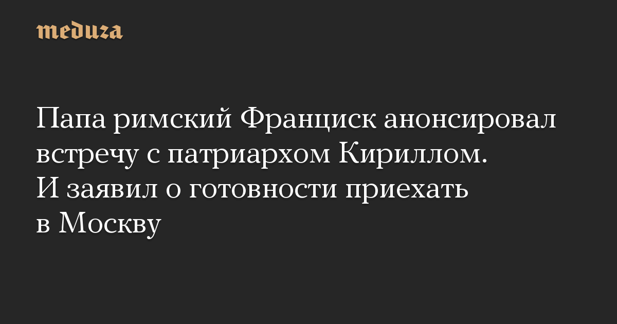 Глава католической церкви допустил, что встреча может состояться в Финляндии или в Москве, куда он, по его словам, готов приехать. «Чтобы говорить с братом, не нужны протоколы», — заявил Франциск.