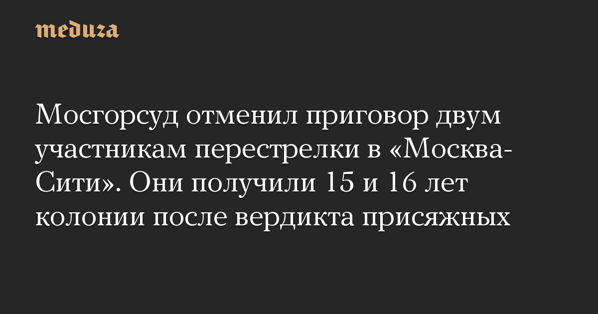 Мосгорсуд отменил приговор двум участникам перестрелки в «Москва-Сити». Они получили 15 и 16 лет колонии после вердикта присяжных