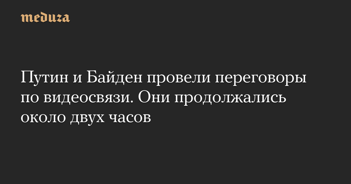 Путин находится в резиденции в Сочи, Байден — в Белом доме в Вашингтоне. Переговоры были закрыты для прессы.