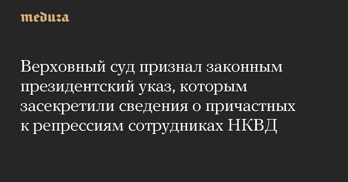 Верховный суд РФ признал законными положения президентского указа, на основании которых засекречена информация о сотрудниках НКВД, причастных к репрессиям.