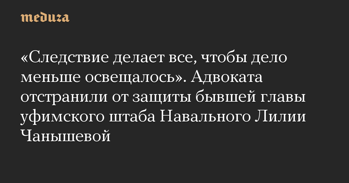 Адвоката Владимира Воронина решили отстранить от уголовного дела бывшей руководительницы штаба Алексея Навального в Уфе Лилии Чанышевой, которую арестовали по обвинению в создании «экстремистского сообщества». Об этом рассказал сам защитник.