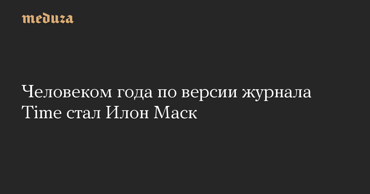 Журнал Time присвоил звание «Человек года — 2021» предпринимателю, основателю космической компании SpaceX и главе производителя электромобилей Tesla Илону Маску. Об этом сообщается в твиттере журнала.