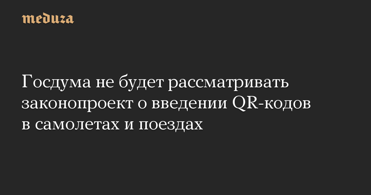 Спикер Госдумы Вячеслав Володин сообщил в своем телеграм-канале, что парламент планирует снять с рассмотрения законопроект о введении QR-кодов для междугородних и международных поездок в самолетах и поездах. 13 декабря этот вопрос обсудит Совет Госдумы.