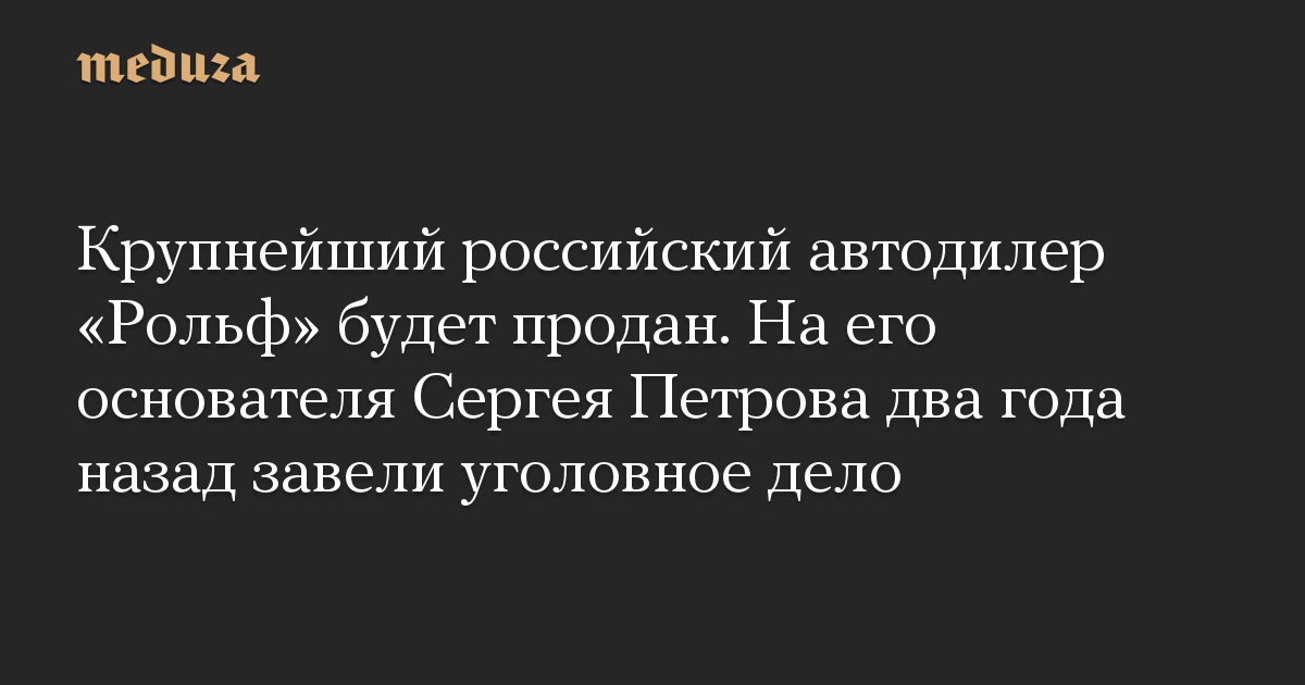 Крупнейший российский автодилер «Рольф» будет продан. На его основателя Сергея Петрова два года назад завели уголовное дело