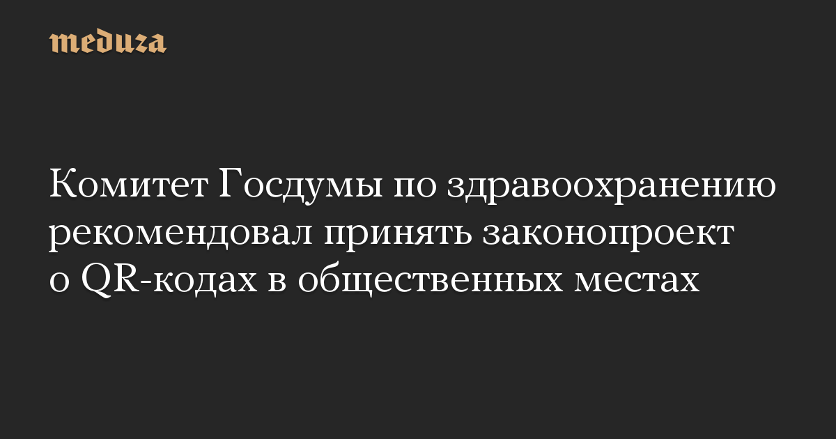Комитет Госдумы по здравоохранению рекомендовал принять законопроект о QR-кодах в общественных местах