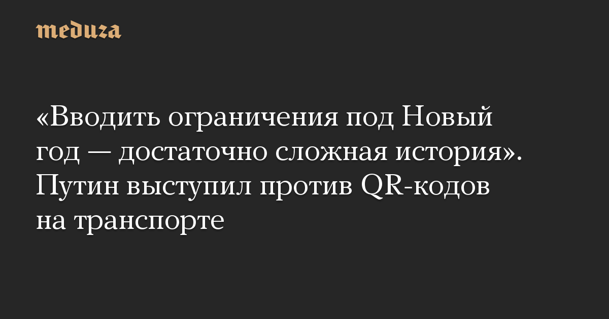 «Вводить ограничения под Новый год — достаточно сложная история». Путин выступил против QR-кодов на транспорте