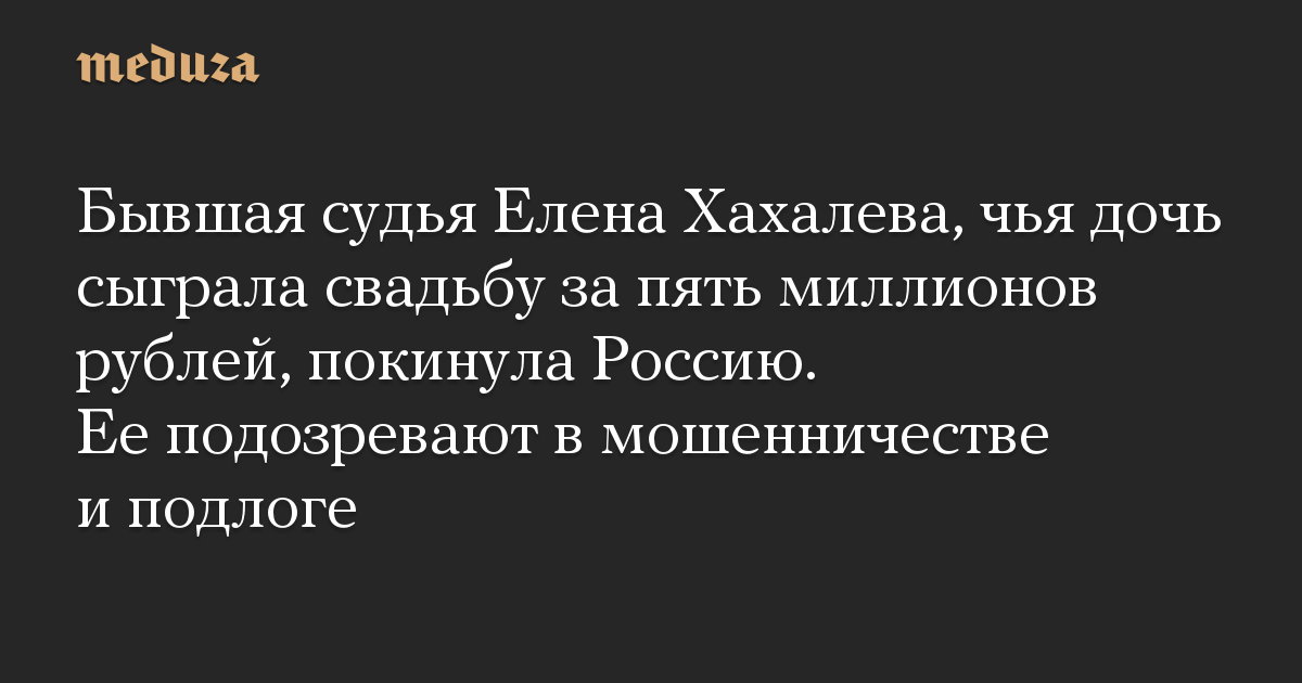 Бывшая судья Елена Хахалева, чья дочь сыграла свадьбу за пять миллионов рублей, покинула Россию. Ее подозревают в мошенничестве и подлоге