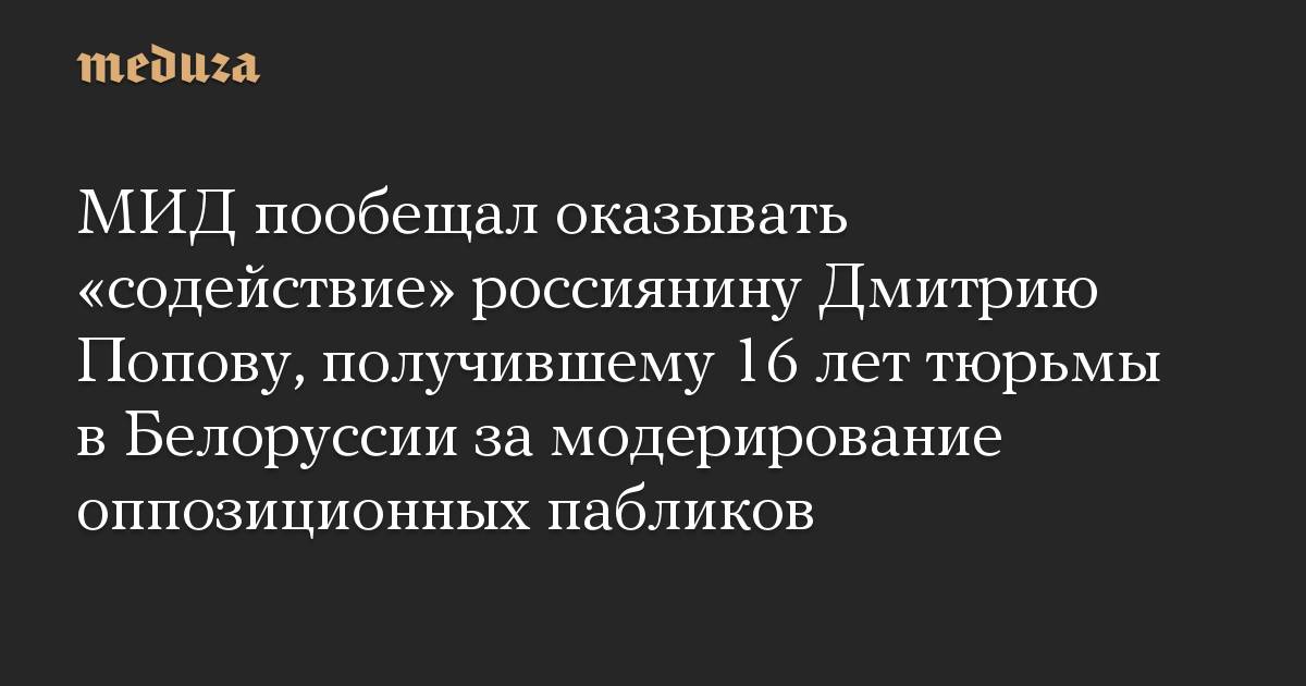 МИД пообещал оказывать «содействие» россиянину Дмитрию Попову, получившему 16 лет тюрьмы в Белоруссии за модерирование оппозиционных пабликов