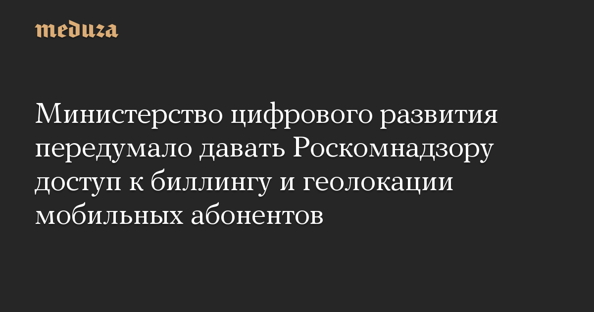 Министерство цифрового развития передумало давать Роскомнадзору доступ к биллингу и геолокации мобильных абонентов