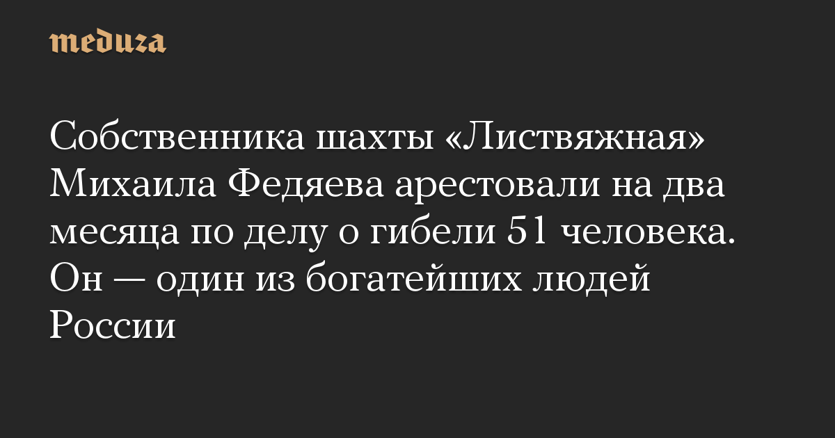 Собственника шахты «Листвяжная» Михаила Федяева арестовали на два месяца по делу о гибели 51 человека. Он — один из богатейших людей России