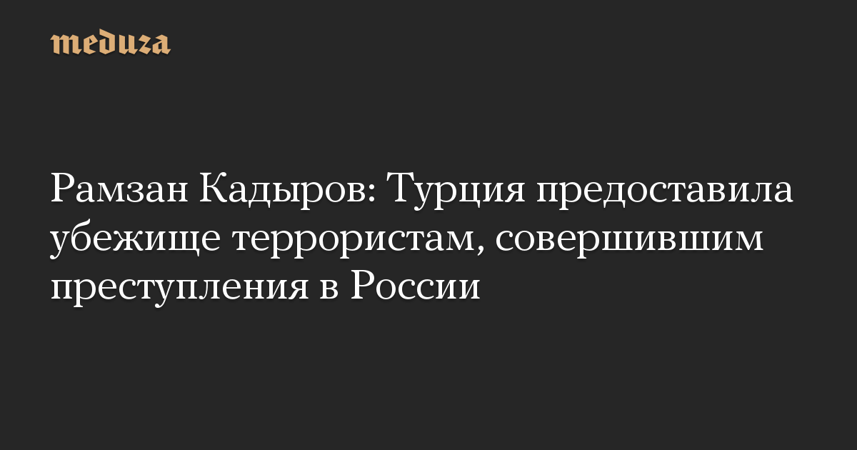 Глава Чечни Рамзан Кадыров в своем телеграм-канале обвинил власти Турции в том, что они «прикрывают террористов, совершивших преступления в России». Кадыров призвал президента Турции Реджепа Тайипа Эрдогана определиться с тем, поддерживает ли Турция террористов или выступает «за прозрачные и честные отношения» с Россией.