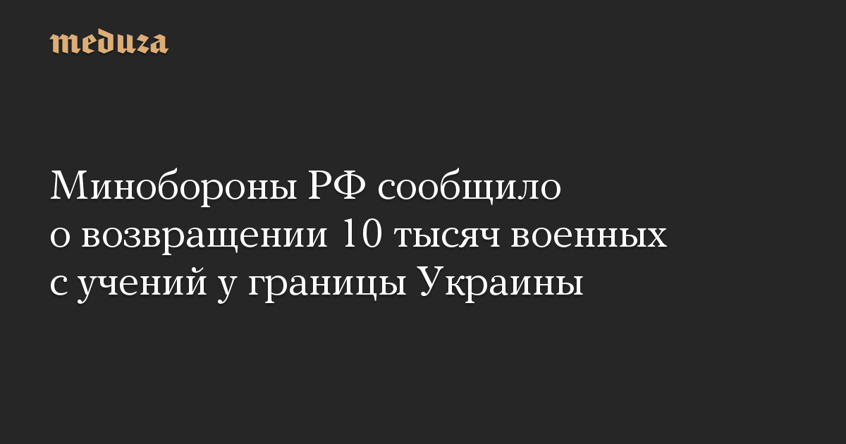 Минобороны РФ сообщило о возвращении 10 тысяч военных с учений у границы Украины