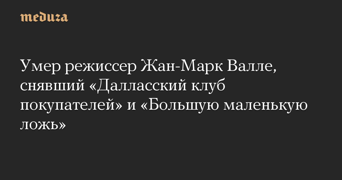 Канадский режиссер Жан-Марк Валле умер в своем доме под Квебеком в возрасте 58 лет, сообщает Variety. Причины смерти не известны.