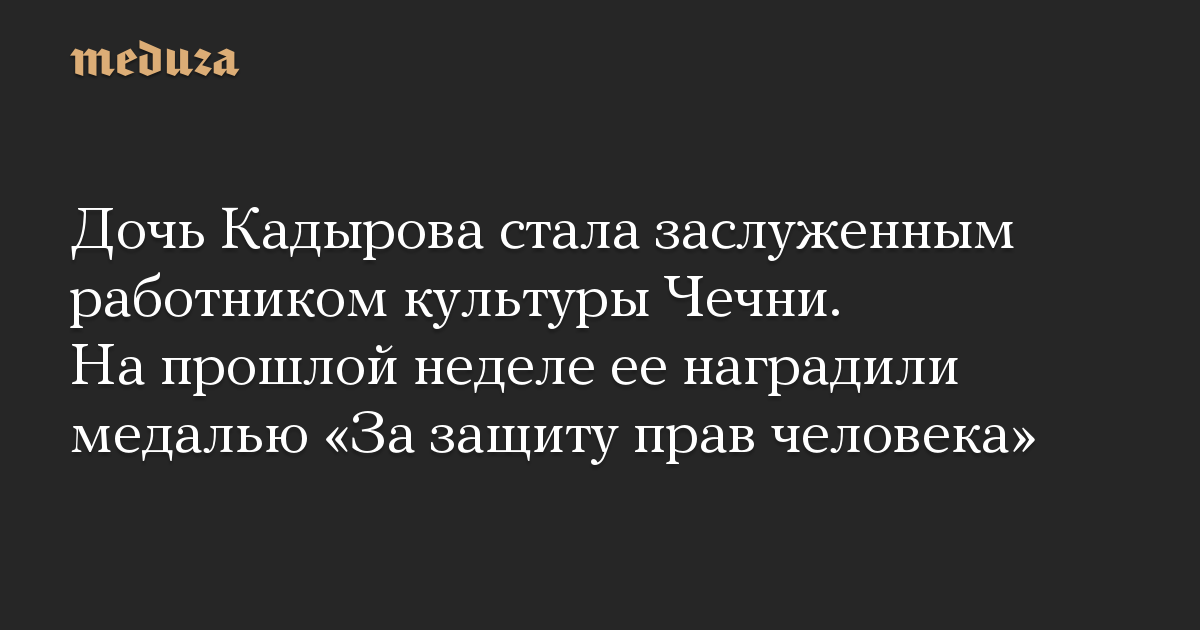 Дочь Кадырова стала заслуженным работником культуры Чечни. На прошлой неделе ее наградили медалью «За защиту прав человека»