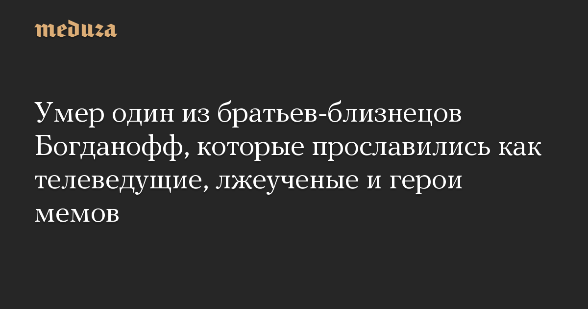 Умер один из братьев-близнецов Богданофф, которые прославились как телеведущие, лжеученые и герои мемов