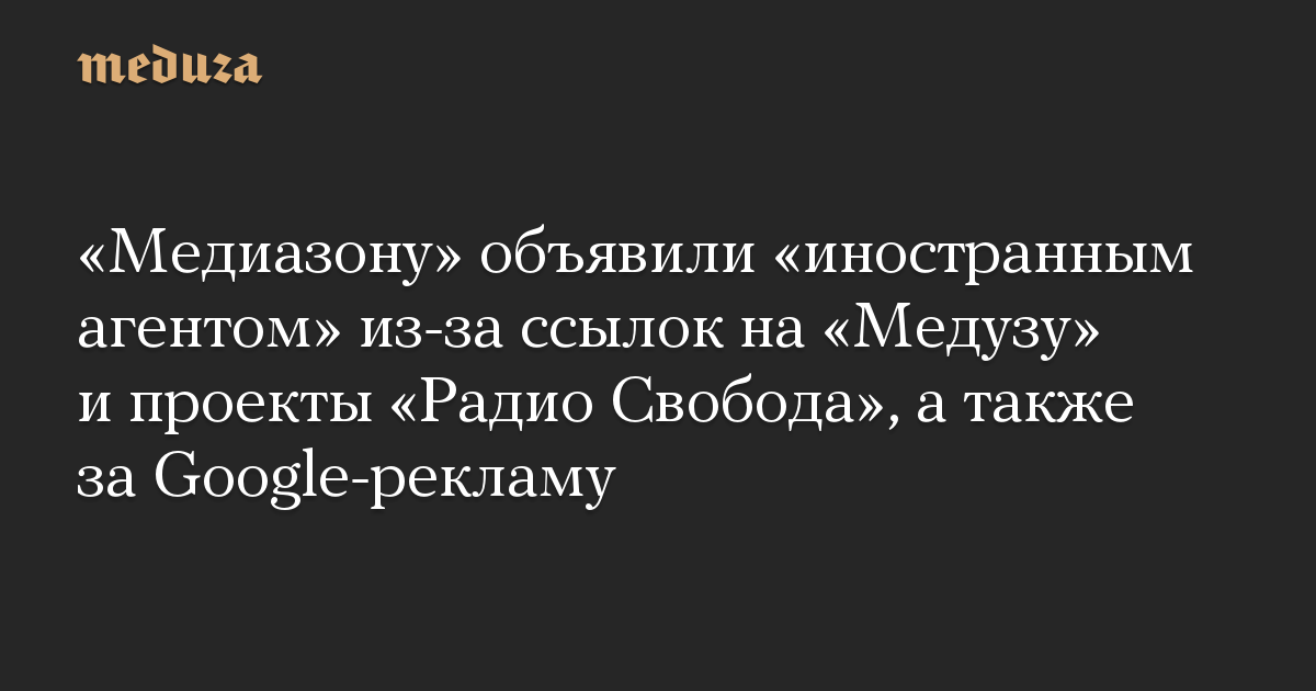 «Медиазону» объявили «иностранным агентом» из-за ссылок на «Медузу» и проекты «Радио Свобода», а также за Google-рекламу