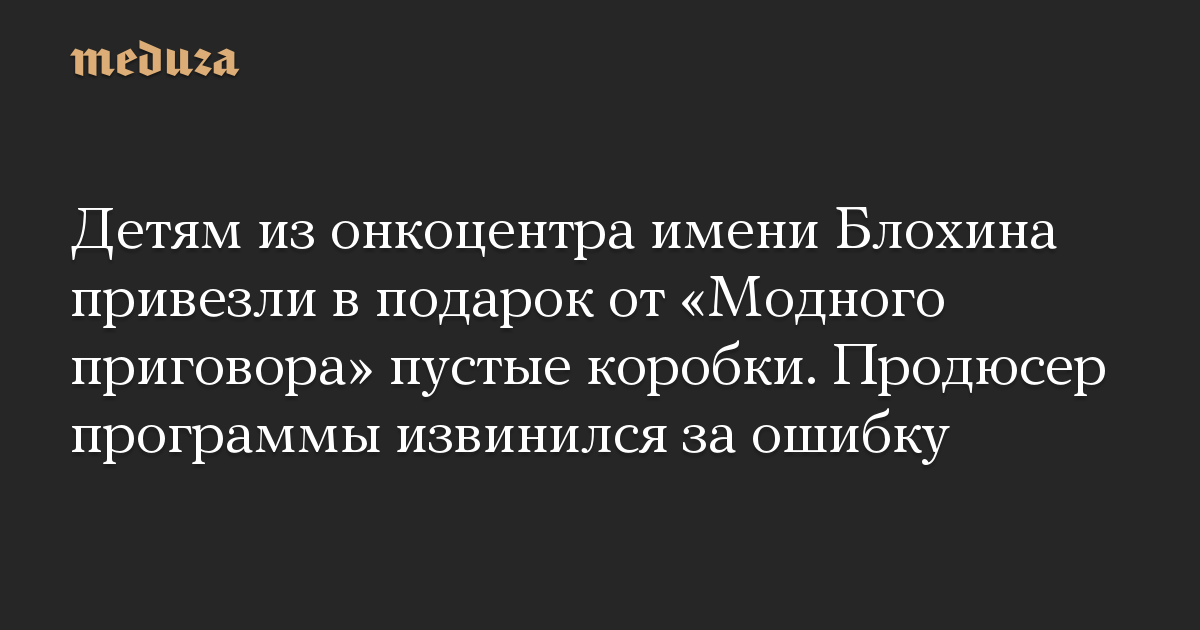 Детям из онкоцентра имени Блохина привезли в подарок от «Модного приговора» пустые коробки. Продюсер программы извинился за ошибку