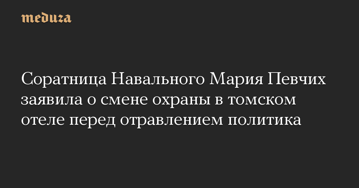 Соратница Навального Мария Певчих заявила о смене охраны в томском отеле перед отравлением политика