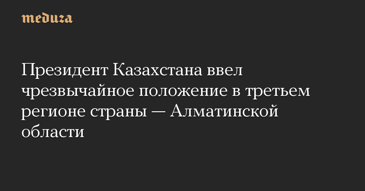 Президент Казахстана ввел чрезвычайное положение в третьем регионе страны — Алматинской области