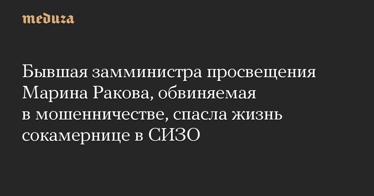 Бывшая замминистра просвещения Марина Ракова, обвиняемая в мошенничестве, спасла жизнь сокамернице в СИЗО