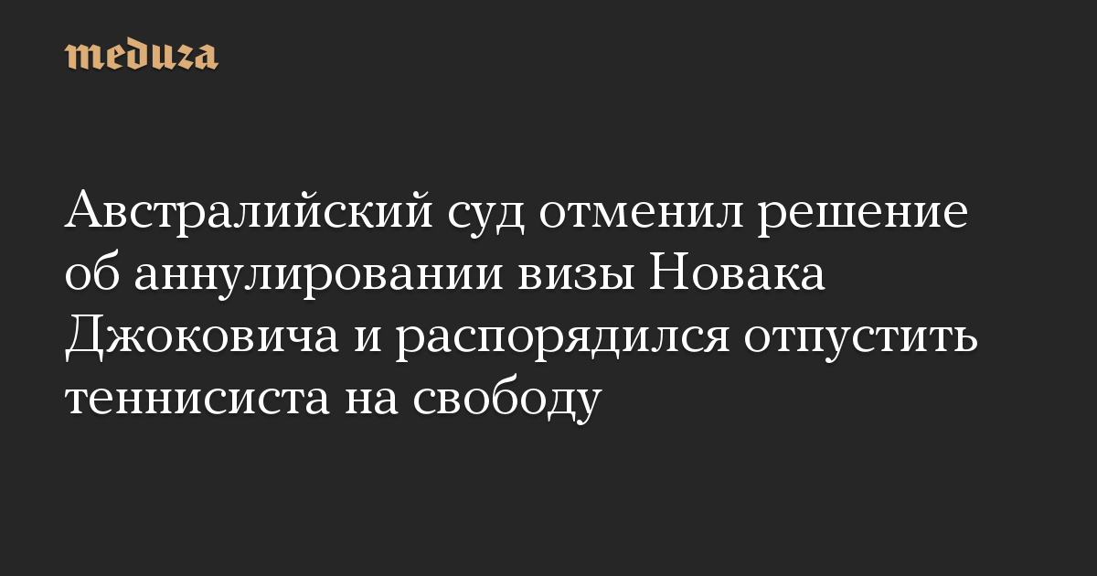 Австралийский суд отменил решение об аннулировании визы Новака Джоковича и распорядился отпустить теннисиста на свободу