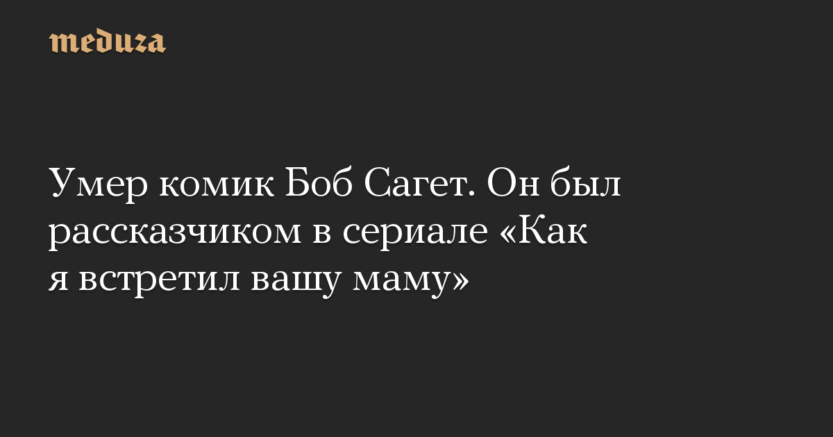 Умер комик Боб Сагет. Он был рассказчиком в сериале «Как я встретил вашу маму»
