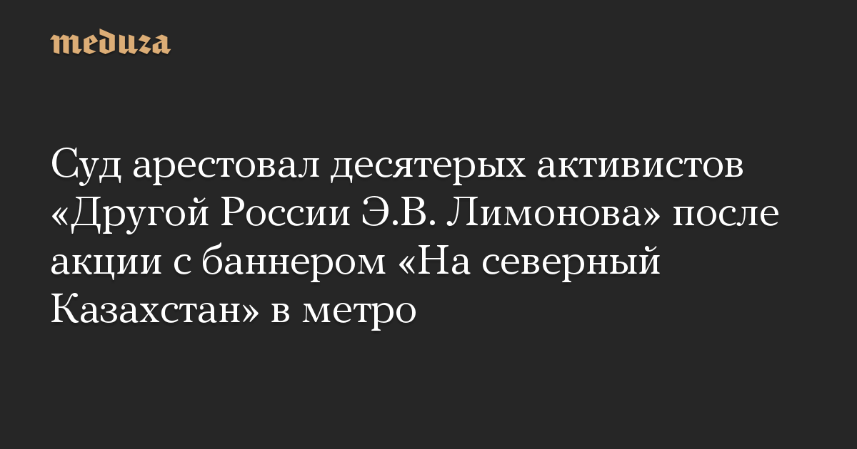 Суд арестовал десятерых активистов «Другой России Э.В. Лимонова» после акции с баннером «На северный Казахстан» в метро