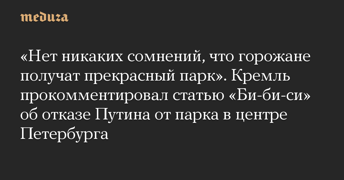 «Нет никаких сомнений, что горожане получат прекрасный парк». Кремль прокомментировал статью «Би-би-си» об отказе Путина от парка в центре Петербурга