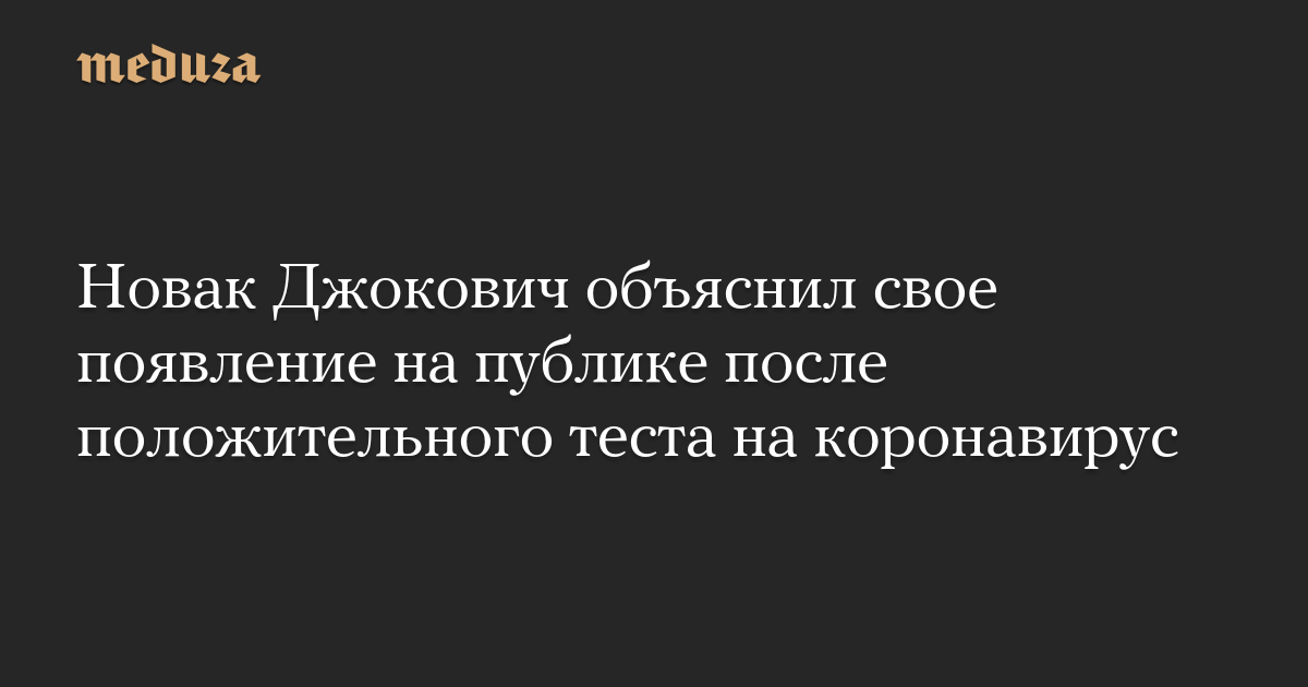 Теннисист, первая ракетка мира Новак Джокович опубликовал в своем инстаграме пост, в котором объяснил, почему нарушал карантин после получения положительного теста на коронавирус.