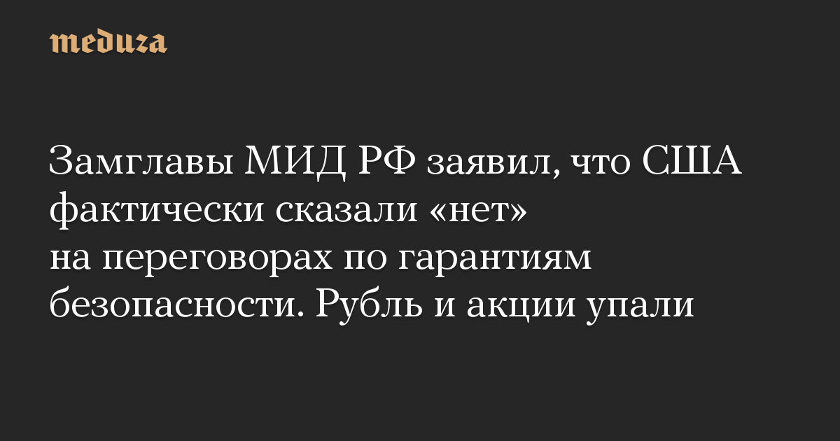 Замглавы МИД РФ заявил, что США фактически сказали «нет» на переговорах по гарантиям безопасности. Рубль и акции упали