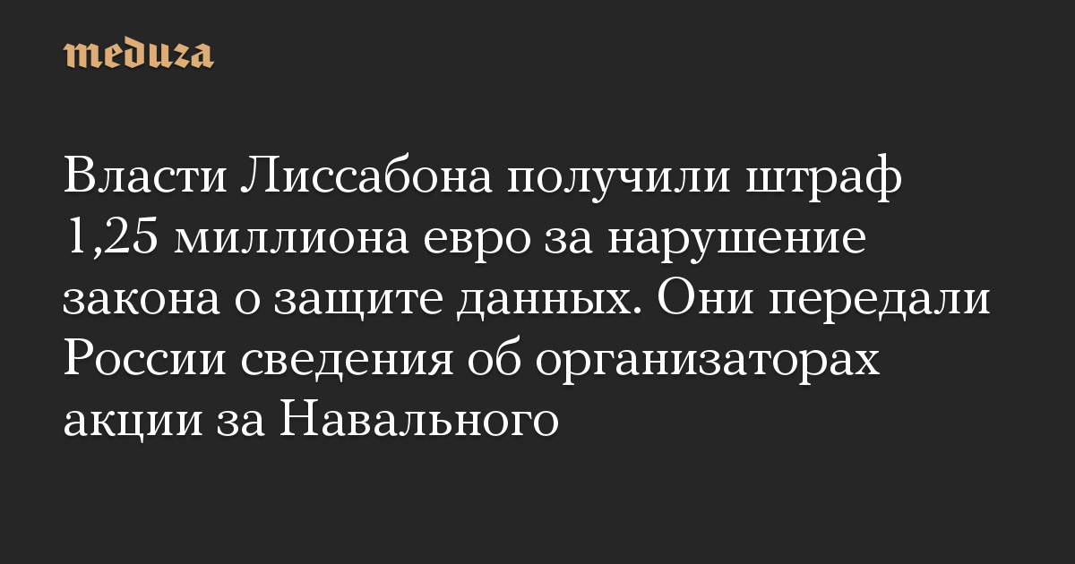 Власти Лиссабона получили штраф 1,25 миллиона евро за нарушение закона о защите данных. Они передали России сведения об организаторах акции за Навального