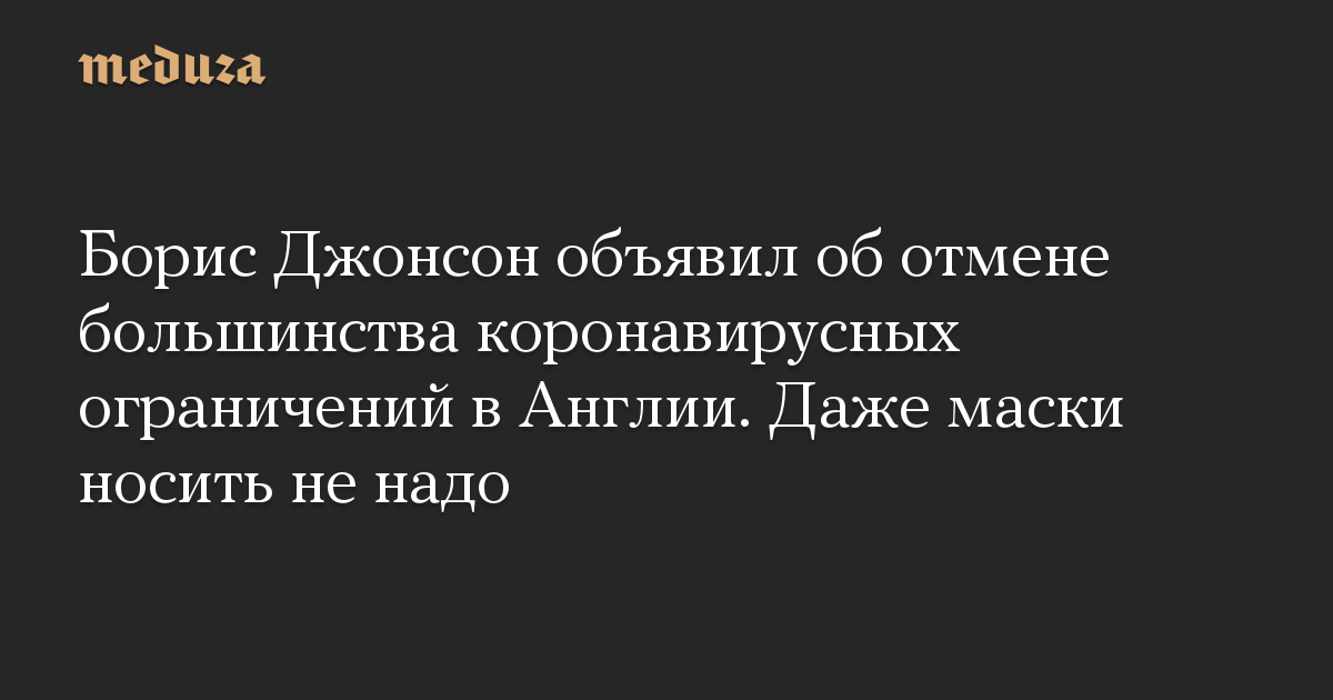 Борис Джонсон объявил об отмене большинства коронавирусных ограничений в Англии. Даже маски носить не надо