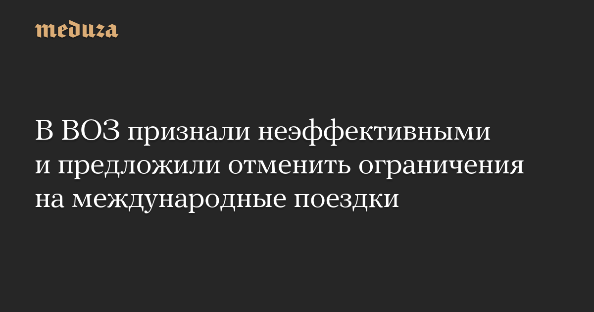 Комитет по чрезвычайной ситуации, созванный главой ВОЗ в связи с пандемией COVID-19, рекомендовал снять или ослабить ограничения на путешествия между странами.