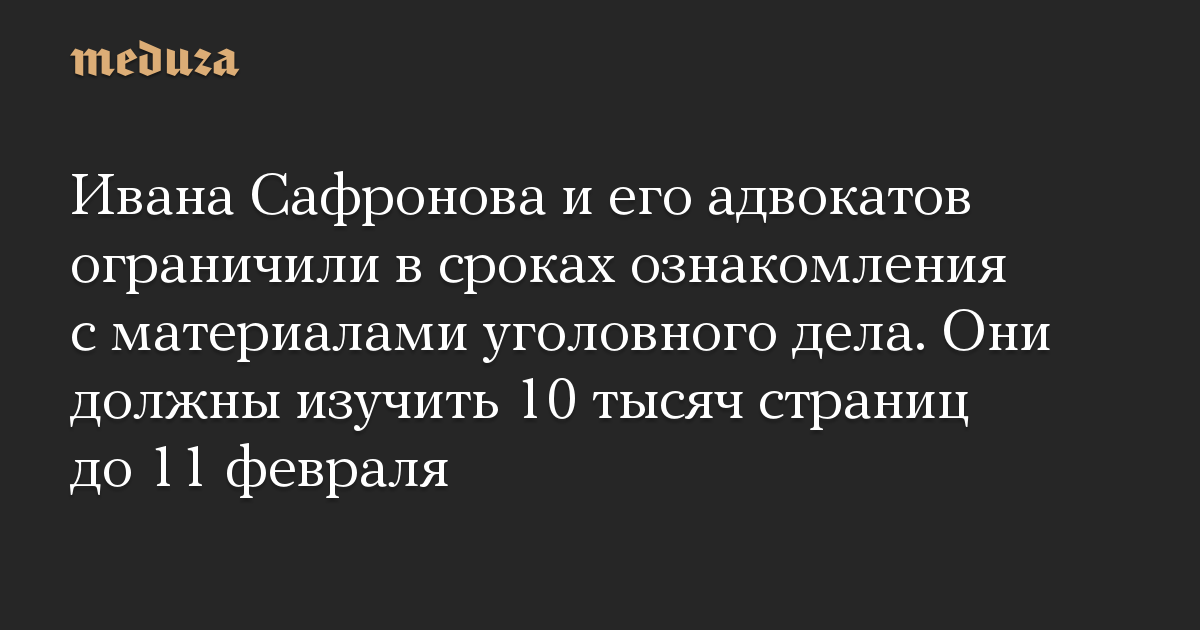 Ивана Сафронова и его адвокатов ограничили в сроках ознакомления с материалами уголовного дела. Они должны изучить 10 тысяч страниц до 11 февраля
