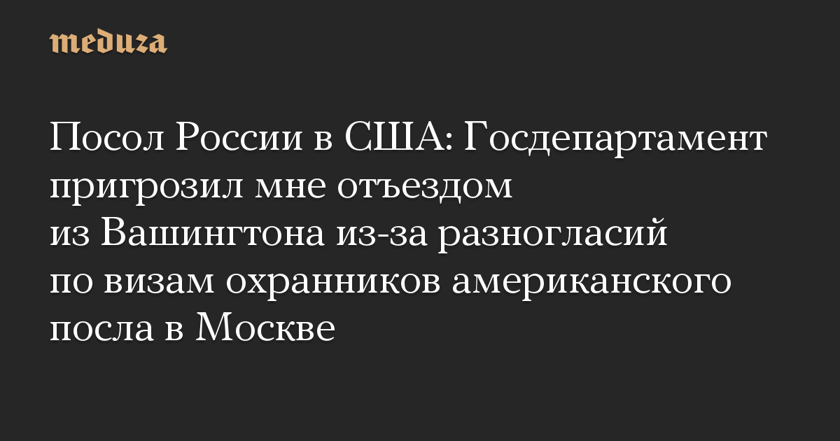 Посол России в США: Госдепартамент пригрозил мне отъездом из Вашингтона из-за разногласий по визам охранников американского посла в Москве