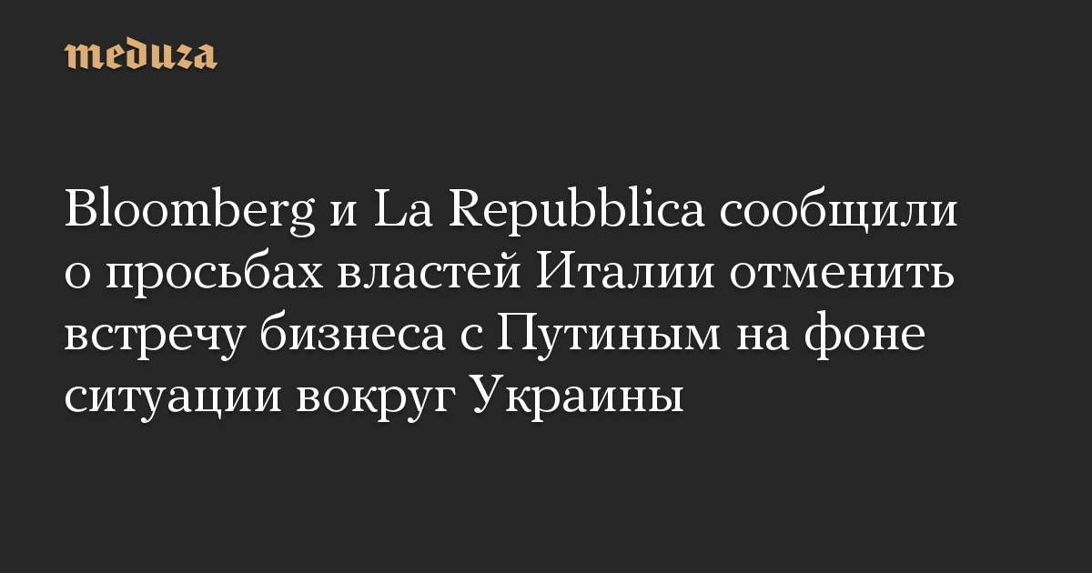 Bloomberg и La Repubblica сообщили о просьбах властей Италии отменить встречу бизнеса с Путиным на фоне ситуации вокруг Украины