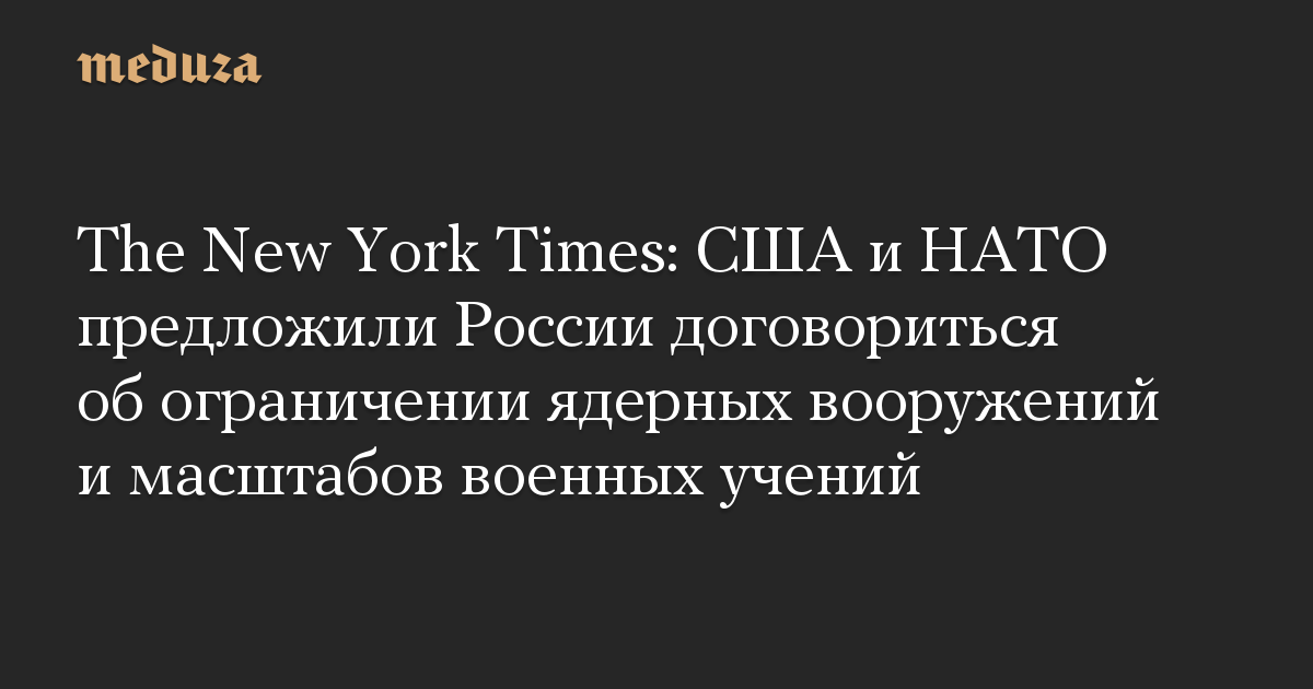 The New York Times: США и НАТО предложили России договориться об ограничении ядерных вооружений и масштабов военных учений