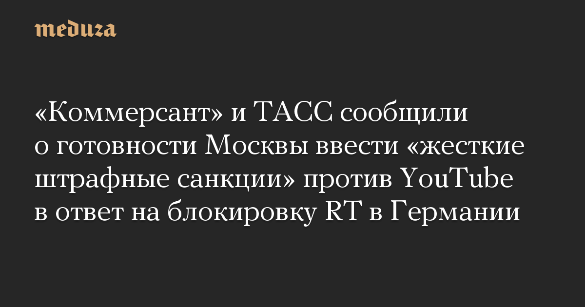 «Коммерсант» и ТАСС сообщили о готовности Москвы ввести «жесткие штрафные санкции» против YouTube в ответ на блокировку RT в Германии