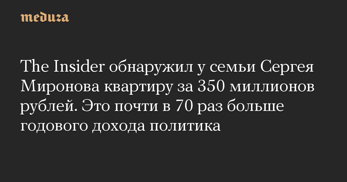The Insider обнаружил у семьи Сергея Миронова квартиру за 350 миллионов рублей. Это почти в 70 раз больше годового дохода политика