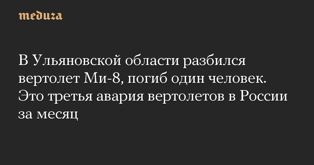 В Ульяновской области разбился вертолет Ми-8, погиб один человек. Это третья авария вертолетов в России за месяц