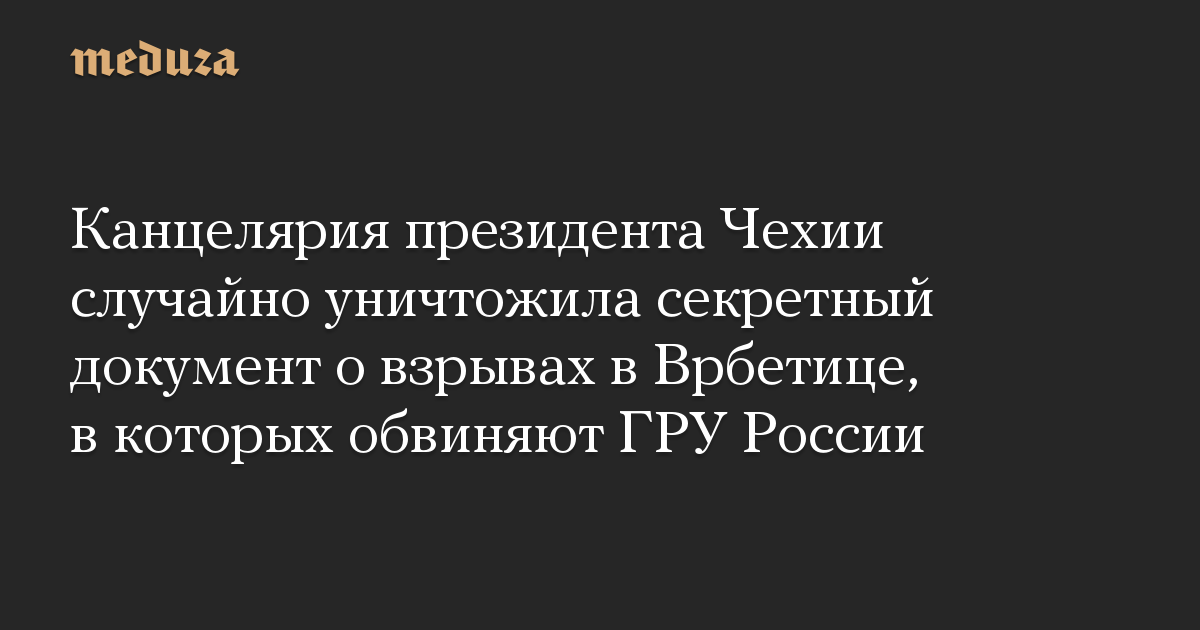 Канцелярия президента Чехии случайно уничтожила секретный документ о взрывах в Врбетице, в которых обвиняют ГРУ России