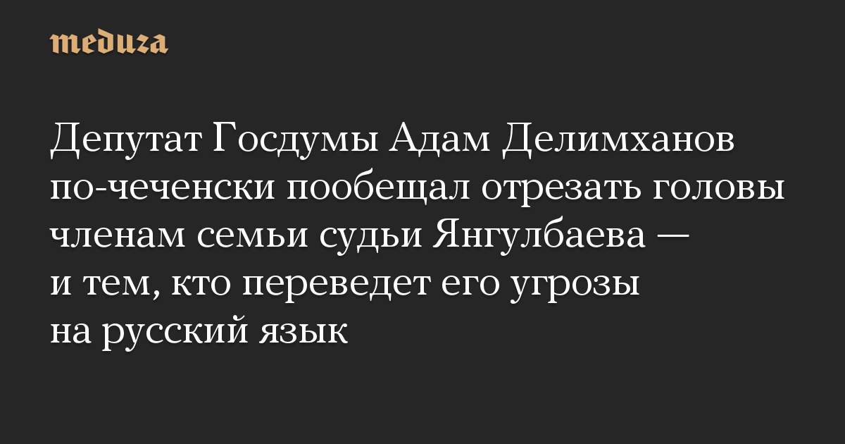 Депутат Госдумы Адам Делимханов по-чеченски пообещал отрезать головы членам семьи судьи Янгулбаева — и тем, кто переведет его угрозы на русский язык