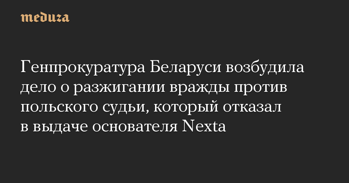 Генпрокуратура Беларуси возбудила дело о разжигании вражды против польского судьи, который отказал в выдаче основателя Nexta