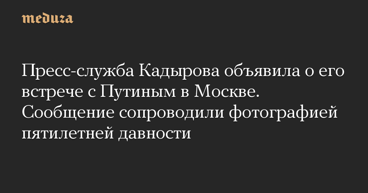 Как отмечает «Дождь», фото, которым сопроводили пресс-релиз на сайте главы Чечни, оказалось старым — пресс-служба Кремля опубликовала его еще в 2017 году.