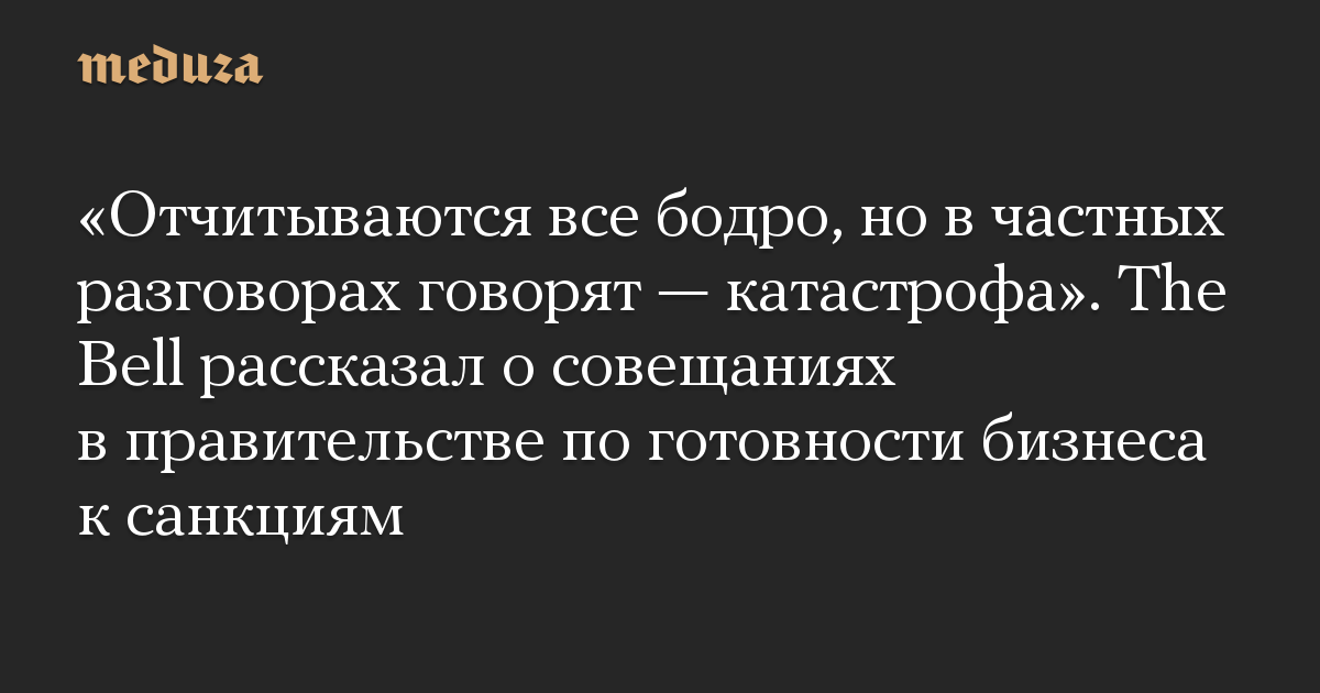 «Отчитываются все бодро, но в частных разговорах говорят — катастрофа». The Bell рассказал о совещаниях в правительстве по готовности бизнеса к санкциям